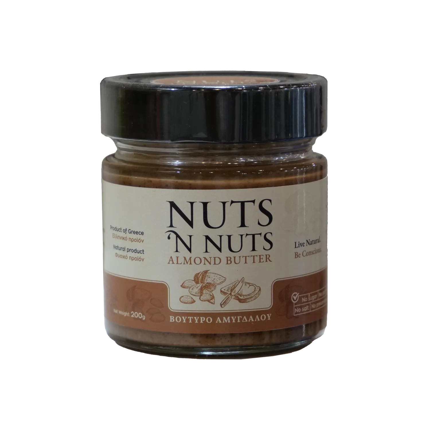 Ανακαλύψτε το εξαιρετικό Βούτυρο Αμυγδάλου της Nuts n’ Nuts, παρασκευασμένο αποκλειστικά από εκλεκτά, φυσικά ελληνικά αμύγδαλα, χωρίς προσθήκη ζάχαρης, αλατιού, φοινικέλαιου ή συντηρητικών.
