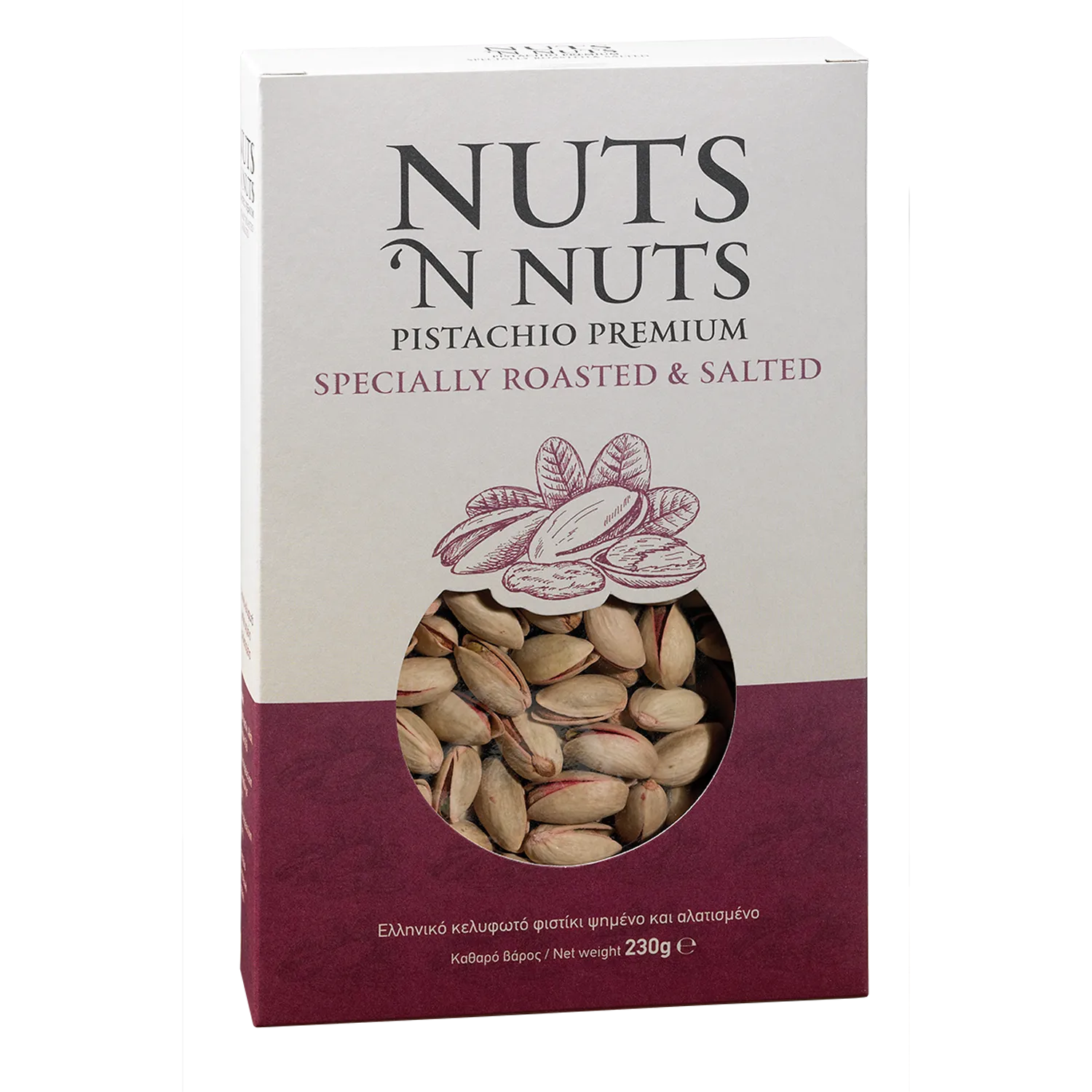 Από τα καλύτερα οικογενειακά κτήματα της Ελλάδας, το ψημένο και αλατισμένο κελυφωτό φιστίκι Nuts n’ Nuts προσφέρει την τέλεια ισορροπία γεύσης, υφής και αρώματος. Διαλεγμένοι καρποί, ιδανικά ψημένοι για πλούσιο άρωμα και απολαυστική υφή, με μια διακριτική δόση αλατιού που απογειώνει κάθε μπουκιά.